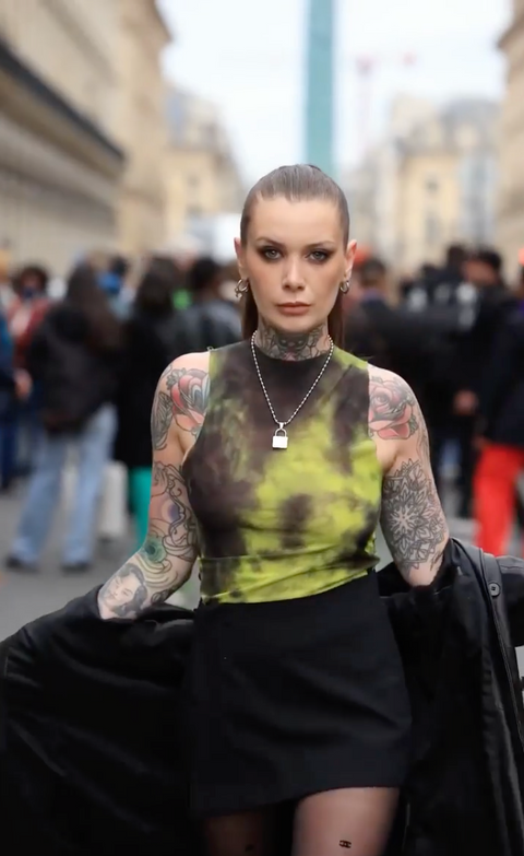 Valentina Belleza wears the Lock from the Lock + Key Necklace Set to Paris Fashion Week