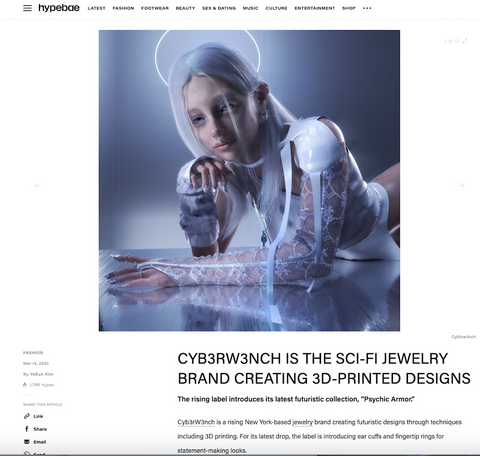 Psychic Armor featured in HYPEBAE as the sci-fi jewelry brand creating 3D printed designs...