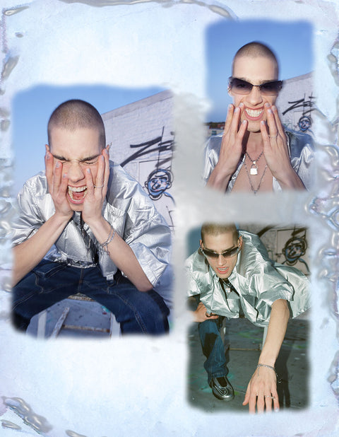 Patryk Lawry wears archived Cyb3rW3nch pieces in editorial for Faculty World, styled by Stella Evans