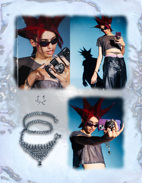 Glaive wears a Cyb3rW3nch septum ring and chainmail for his PopSocket feature in Rolling Stone