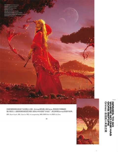 Grimes wears a custom Cyb3rW3nch chainmail thigh garter for a cover shoot with Vogue China